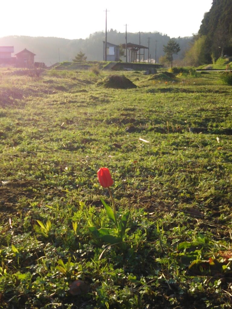 長い間、雑草に埋もれていた野バラやアイリス、そして一輪のチューリップ。それらは廃線になる前からそこにあり、誰かが手を入れなければ人知れず消えていくはずだった「駅の記憶」そのものです。島崎様が草を刈り、光を届けたことで、彼らは再び息を吹き返し、毎年変わらぬ花を咲かせるようになりました。