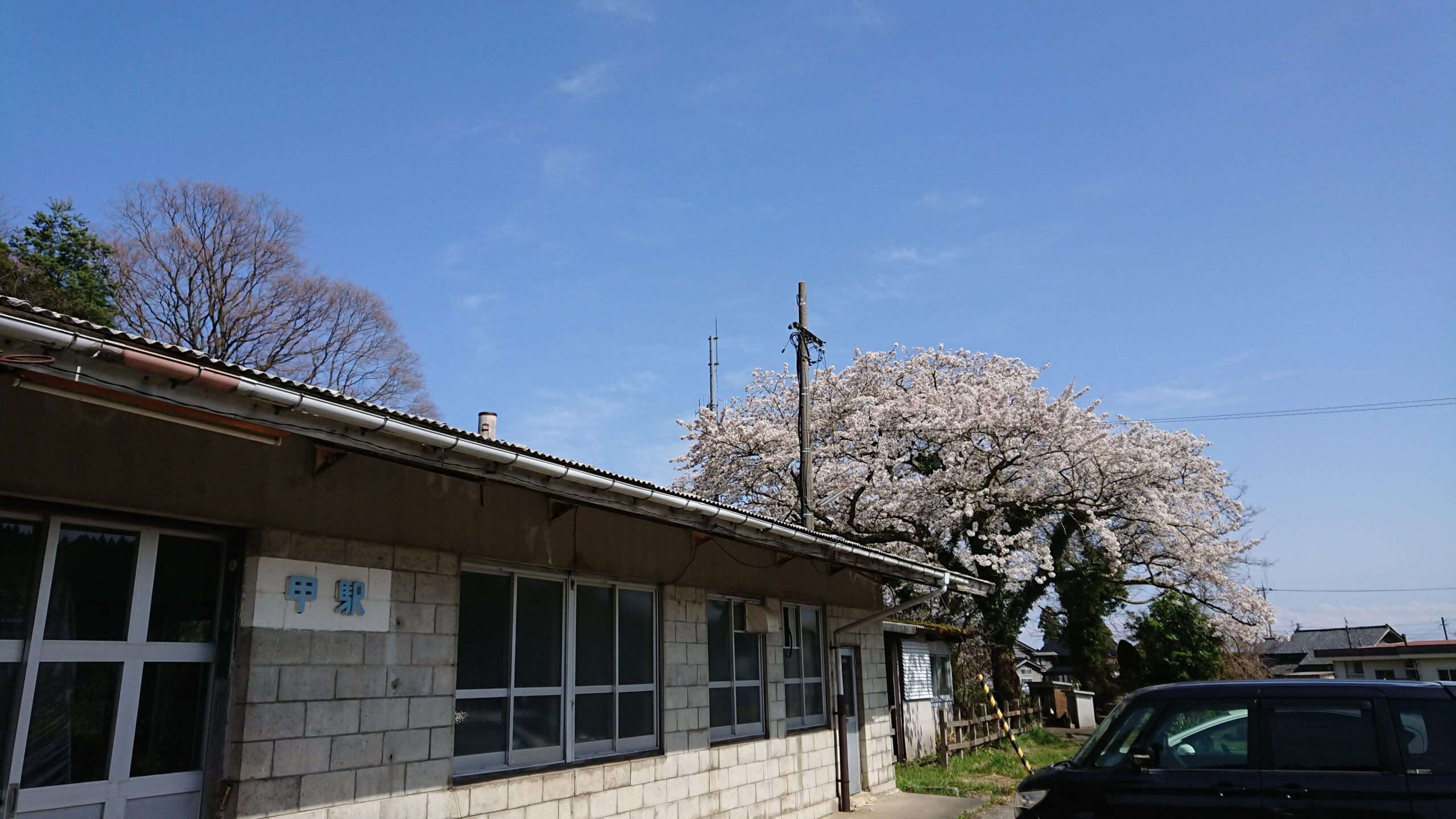 甲駅の桜は2種類あります。4月に咲く「ソメイヨシノ」とGWに咲く「エゾサクラ」です。