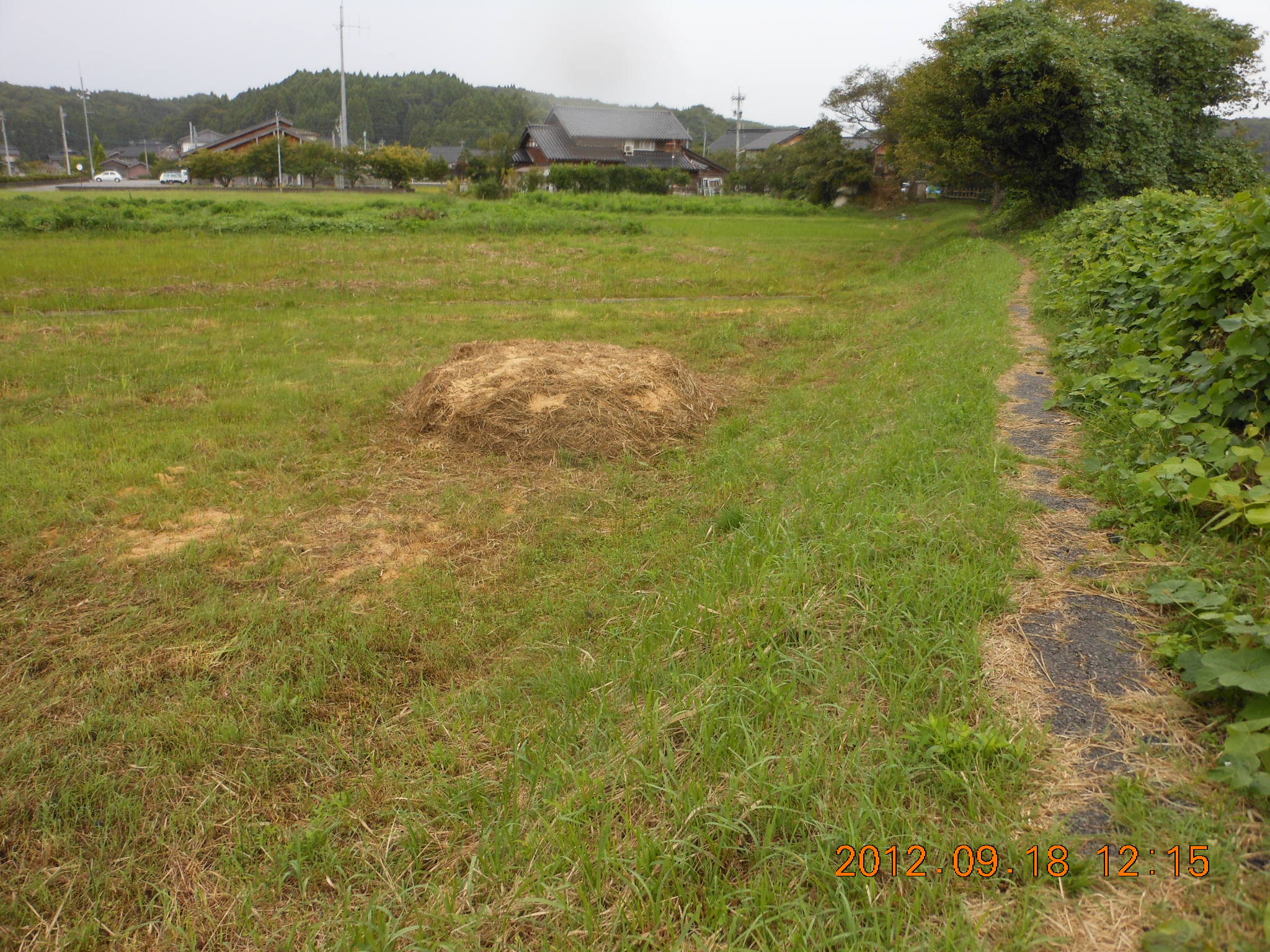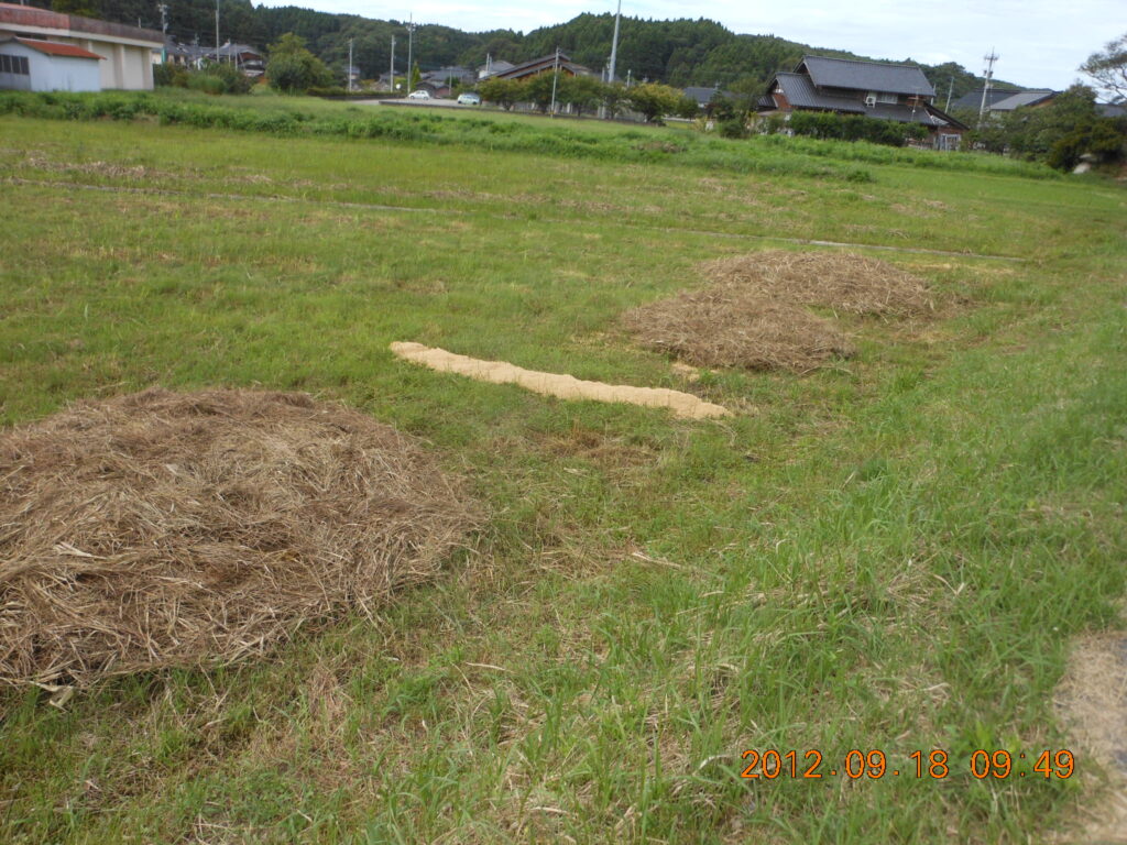 - 草刈りをした刈草は量が多すぎるので野焼きしました。穴水町は穴水消防署に届を出せばできます、この当時は知らなかったので、そういうことはしていません。