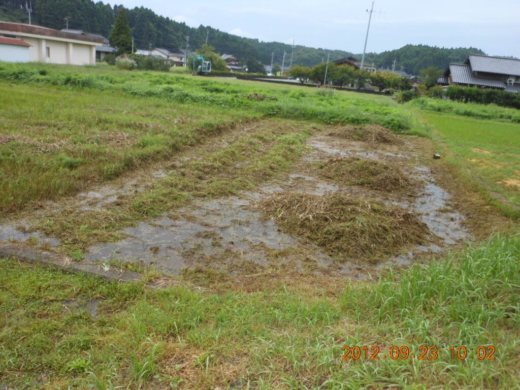 水田だった耕作放棄地は重量のあるトラクターで収穫するので、地中に硬盤層ができていて水はけが悪いのが普通です。トラクターがはまるような重湿田では逆に地下水位が高すぎます。
