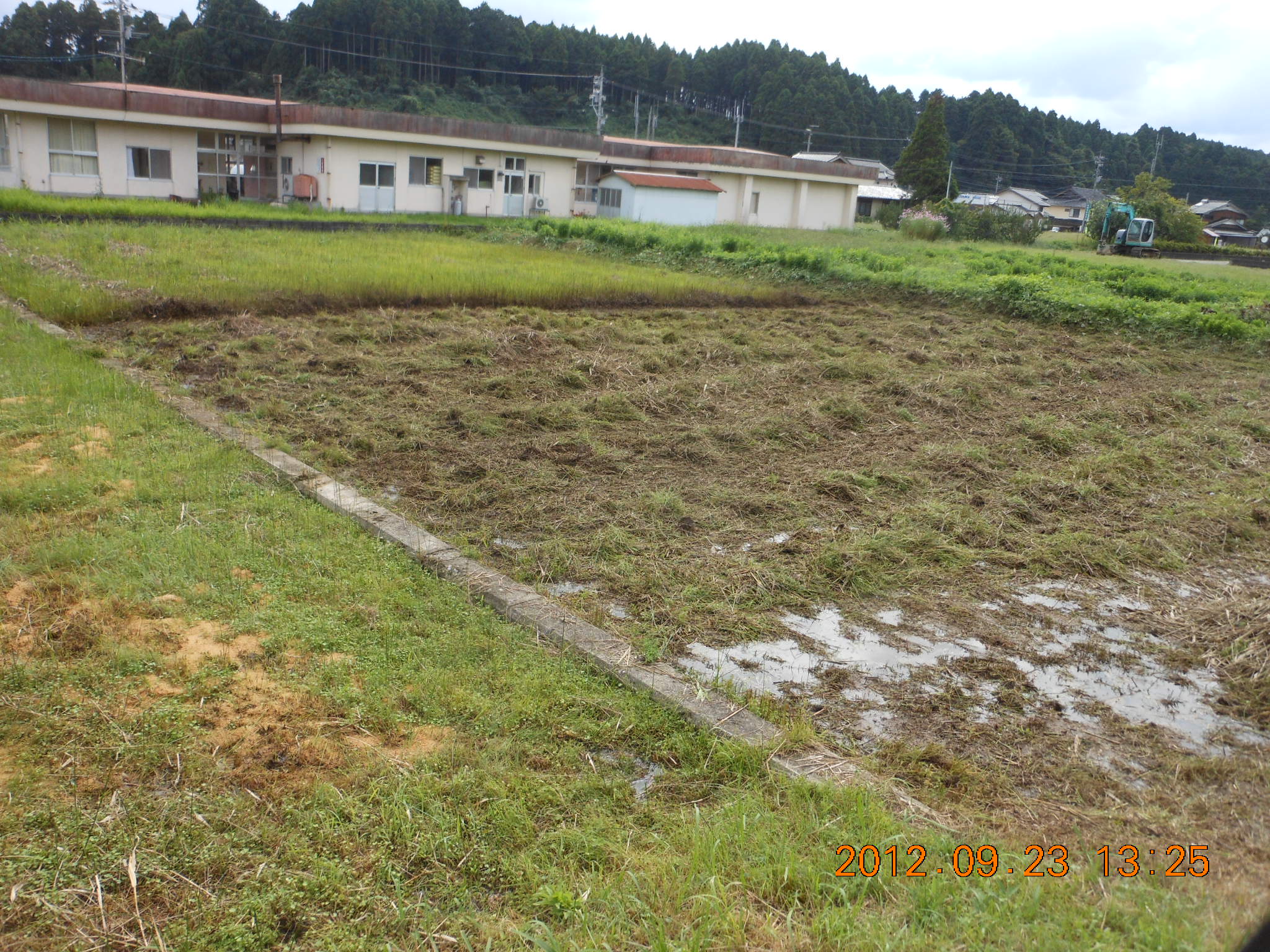 - 排水溝はふさがっているので溝の掃除。周囲に排水用の溝を作ります。ほ場の中にも5mや10m間隔で溝を掘ります