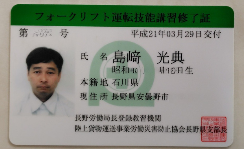フォークリフトは現場の要ですので、長野労働局長の登録教習機関で取得されたその資格、ぜひ今後も大切になさってください。