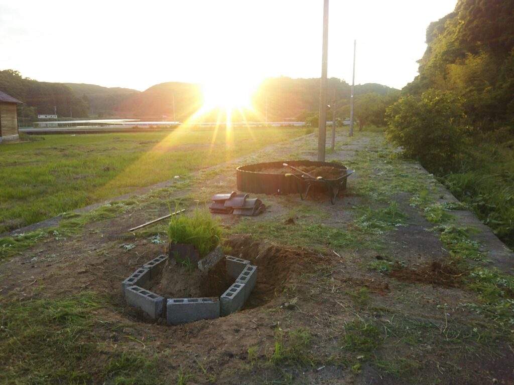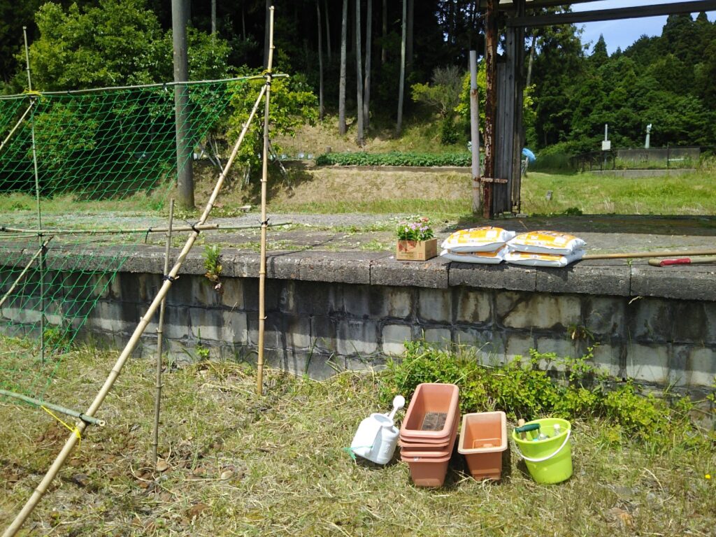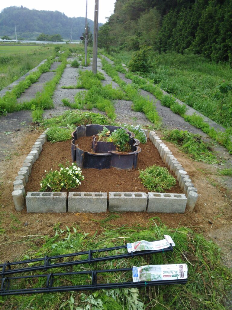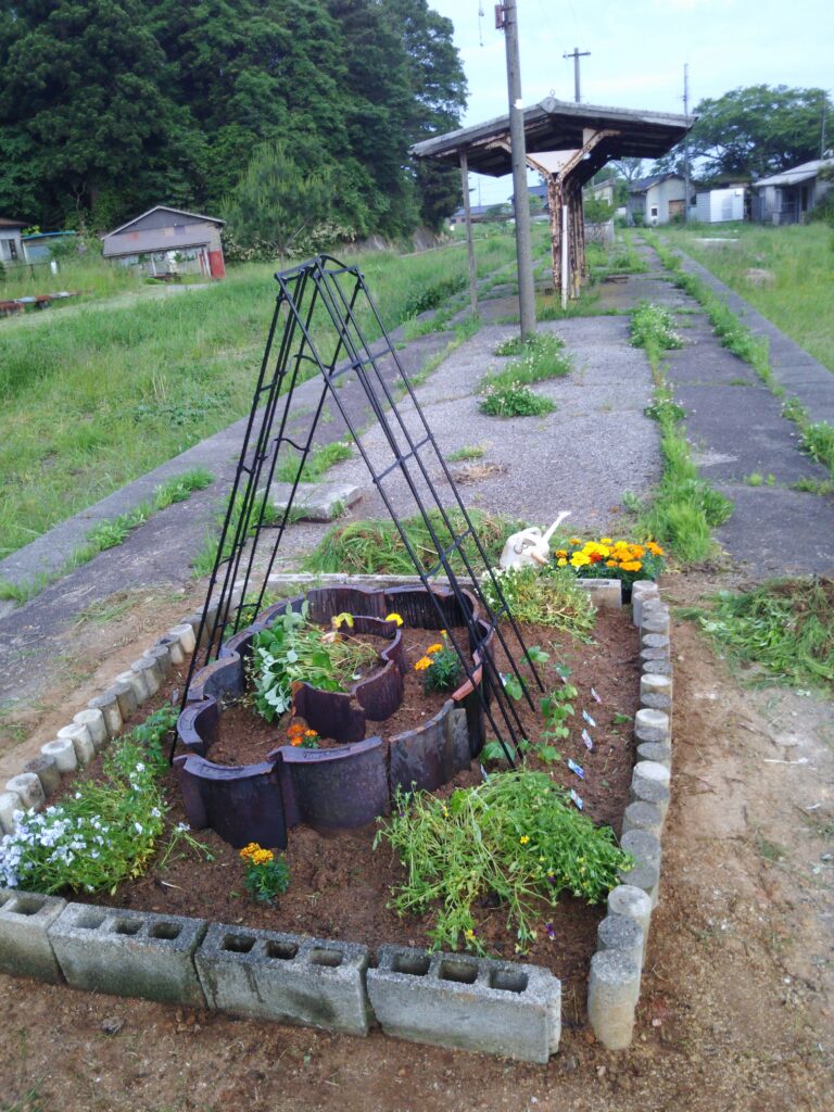 「廃線・甲駅ホーム再興記:屋根瓦とブロックで築いた『空中の花壇』」