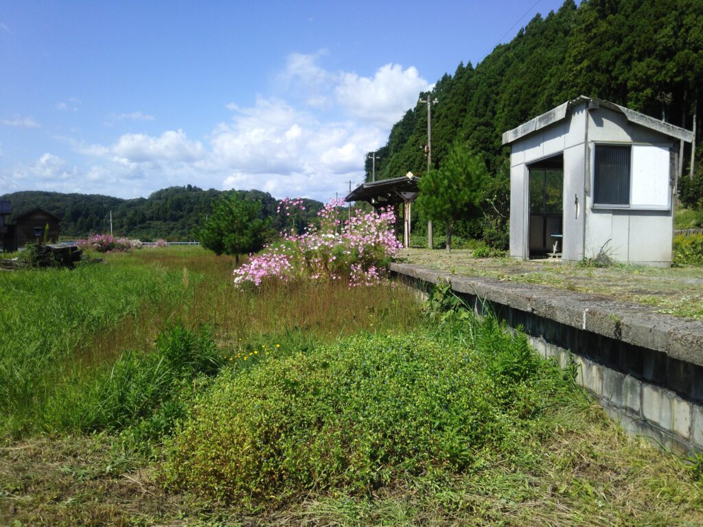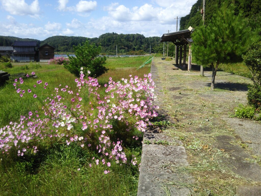 それで休眠期間中の冬の間に荒れ果てていた駅舎とホーム周辺を、のと鉄道さんの許可をもらって2015年の正月明けから2ヶ月ほど草刈りをして整備しました。